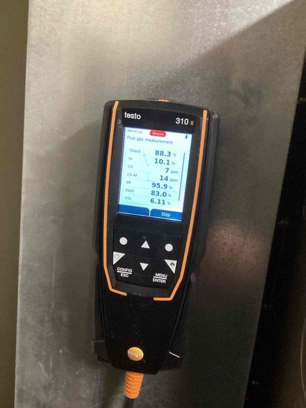 Performed comprehensive HVAC tune-up including combustion analysis with Testo 310 II analyzer. System demonstrated excellent efficiency with 95.9% EF and safe CO levels (7ppm). All readings within manufacturer specifications; equipment operating properly after service.
