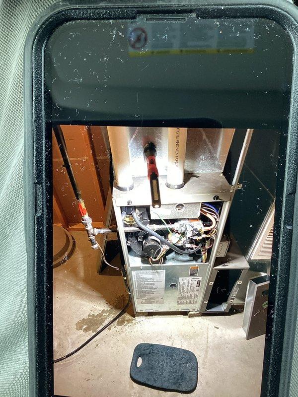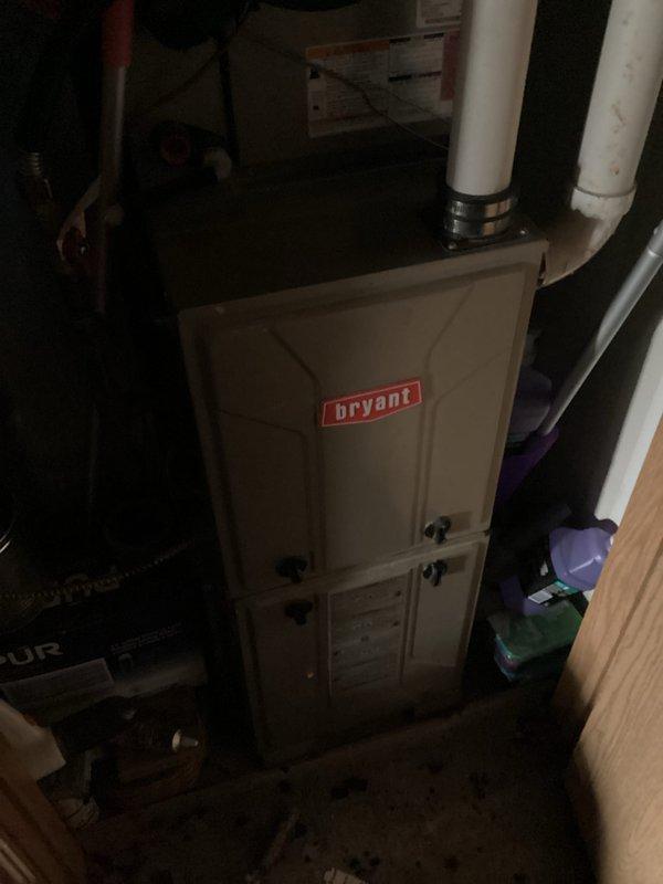 Performed routine inspection and maintenance service on Bryant residential furnace. Examined ventilation infrastructure including PVC pipes and metal ductwork connections, confirming proper installation and system functionality. Unit appears to be operating normally with no immediate concerns identified.