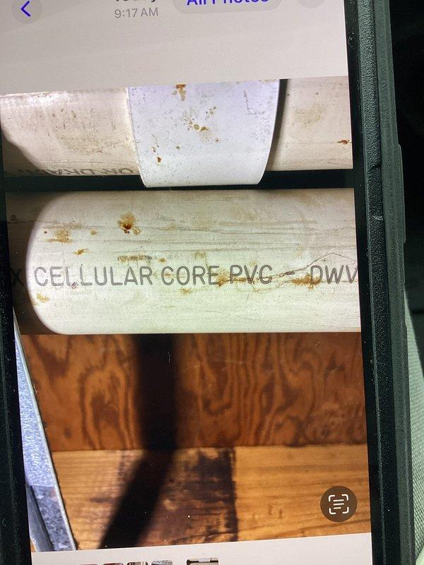 Responded to no heat call on system less than 10 years old. Discovered improper PVC cellular core DWV pipe installed on condensate drain. Replaced with proper schedule 40 PVC pipe meeting manufacturer specifications. System now operating normally with appropriate condensate drainage.
