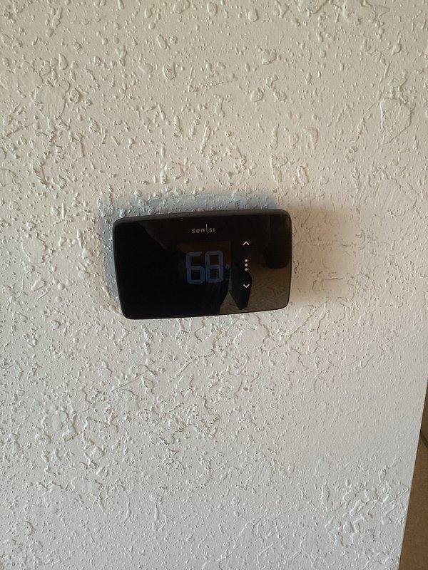 Performed comprehensive system inspection and tune-up on HVAC unit. Checked Sensi thermostat functionality, confirming proper temperature reading at 69°F and verifying all control buttons were operational. System is functioning within normal parameters with no issues detected.