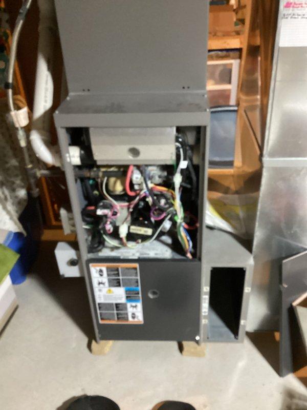 Successfully installed new high-efficiency furnace in basement utility area, including proper connection of intake/exhaust PVC venting system and gas line. Installed condensate drainage system with proper routing to floor drain, and completed all necessary connections to existing ductwork.
