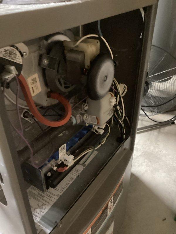Responded to a no-heat service call on an aging HVAC system (10+ years). Diagnosed failed blower motor as the cause of heating failure. Removed and replaced the blower motor assembly, rewired electrical connections to factory specifications, and verified proper system operation. System now functioning normally with restored heat output.