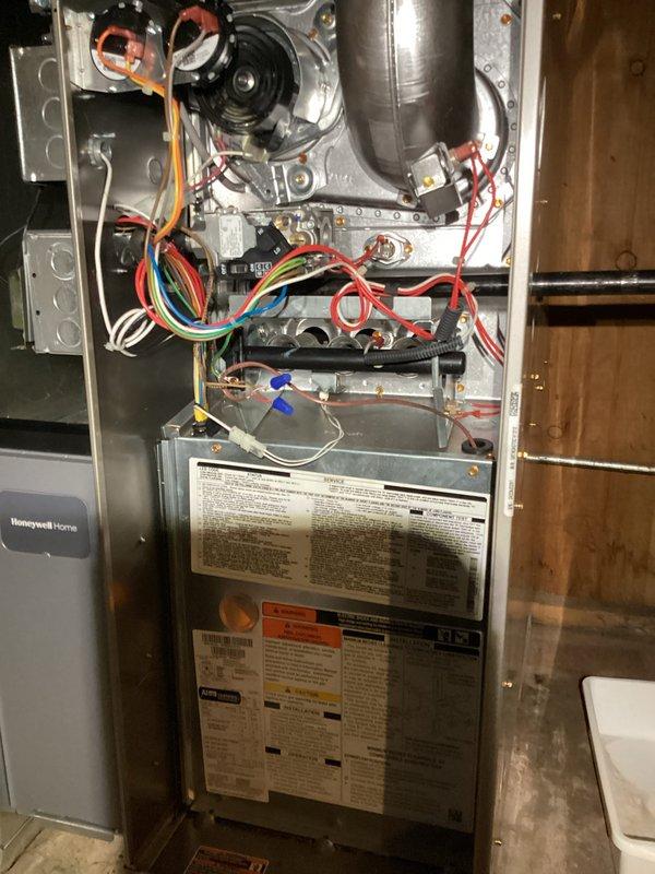 Successfully installed a high-efficiency furnace with proper ductwork connections in the client's utility room. Completed all necessary plumbing and electrical connections, ensuring proper insulation of black piping and secure mounting of junction box. System was tested and is functioning optimally with appropriate airflow.
