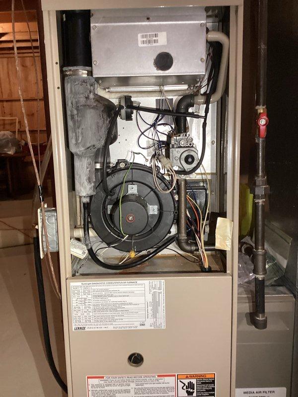 Performed comprehensive tune-up on residential furnace system, including inspection of blower motor, electrical components, heat exchanger, and gas connections. Removed access panel to conduct thorough examination of internal components and verified all safety mechanisms were functioning properly. System was returned to service in optimal operating condition with all panels properly secured.