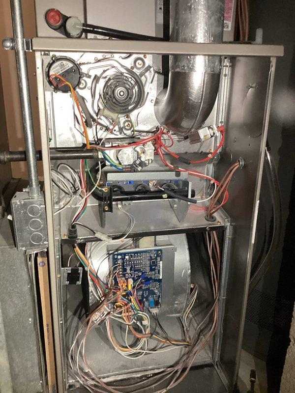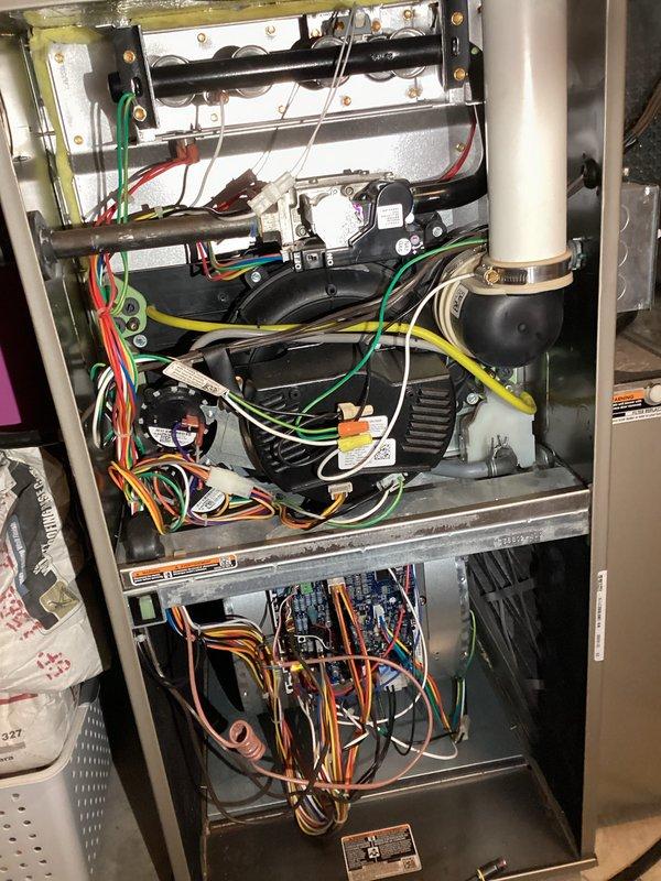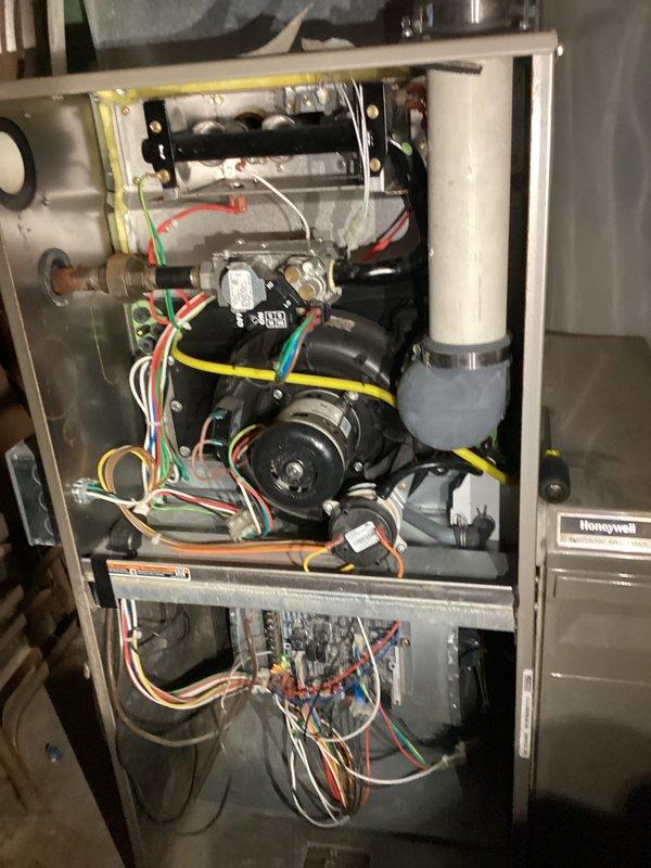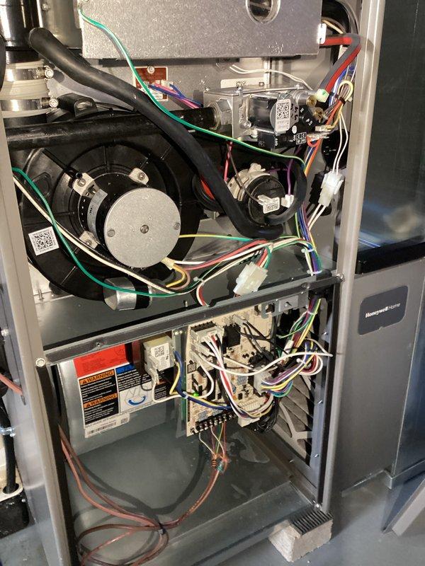 Performed scheduled preventative maintenance on Honeywell HVAC system. Conducted thorough inspection of furnace components including blower motor assembly, control board, electrical connections, and wire harnesses. System was found to be properly installed and in normal working condition with no visible damage, leaks or anomalies.