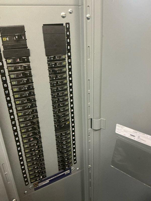 Conducted site assessment of existing electrical distribution panel to evaluate capacity for HVAC system replacement. Documented current breaker configuration and load distribution across both columns (2-42 even, 9-55 odd) to determine available capacity for new equipment installation. Panel appears in good working condition with no visible damage or abnormalities.