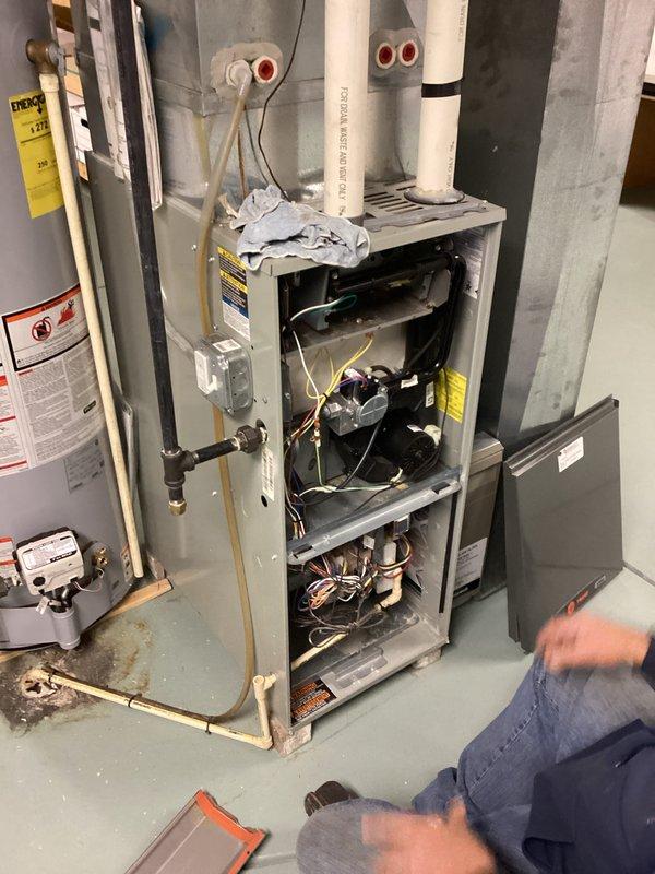 Performed scheduled maintenance on residential furnace system. Inspected control board and electrical connections, finding all components in proper working order. Verified condensate drainage system functioning correctly with no blockages in PVC piping.