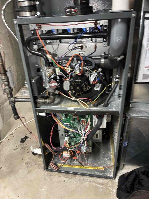 Performed routine maintenance on customer's furnace system. Inspected electrical components and wiring connections with testing probe, ensuring proper voltage readings and secure connections. Examined internal components including circuit boards and mechanical elements, with all systems verified to be operating within manufacturer specifications.