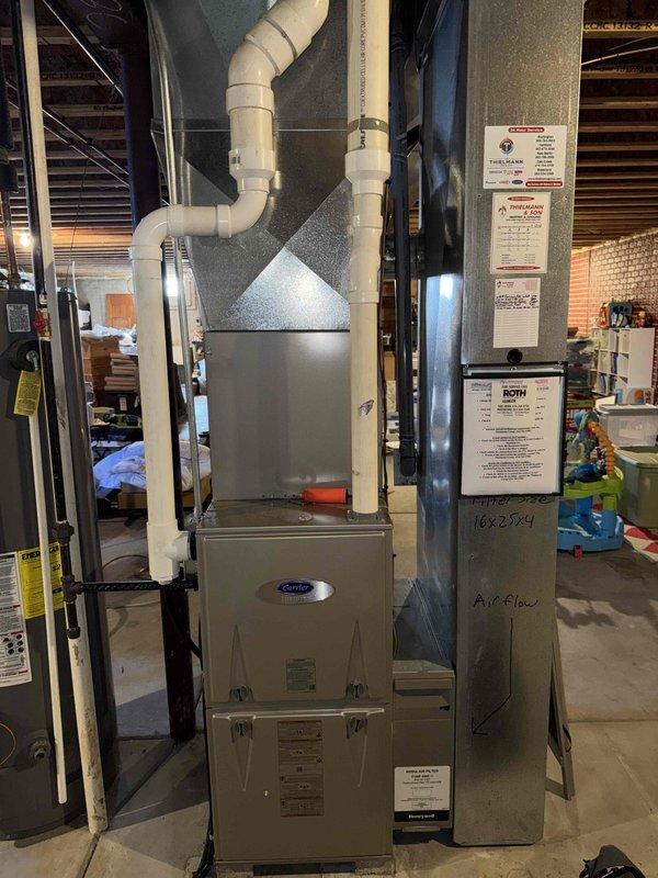 Completed installation of a new HVAC system in the basement utility area. Removed old equipment, installed new unit with proper connections to existing plumbing stack and ductwork. Secured all piping and electrical components to code standards and verified system operation before completing service.