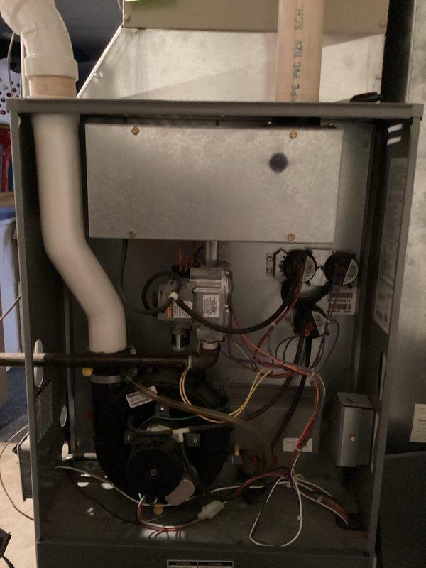 Performed comprehensive tune-up on residential furnace system, including inspection of internal components, electrical connections, and gas valve assembly. Removed front panel to check motor assembly functionality and verified proper operation of venting system with PVC pipes. All components were found in working order with no issues detected during service.