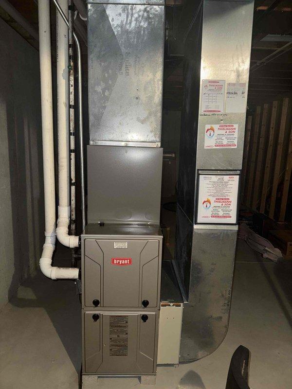 Completed seasonal tune-up on Bryant furnace system located in basement. Performed standard maintenance including filter inspection, combustion analysis, and safety check of all components. System is operating within manufacturer specifications with no issues detected.