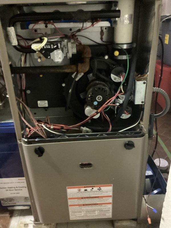 Performed comprehensive tune-up service on gas furnace. Removed access panel to inspect blower motor, electrical components, and wiring connections. All components were found to be in proper working order with no issues identified.