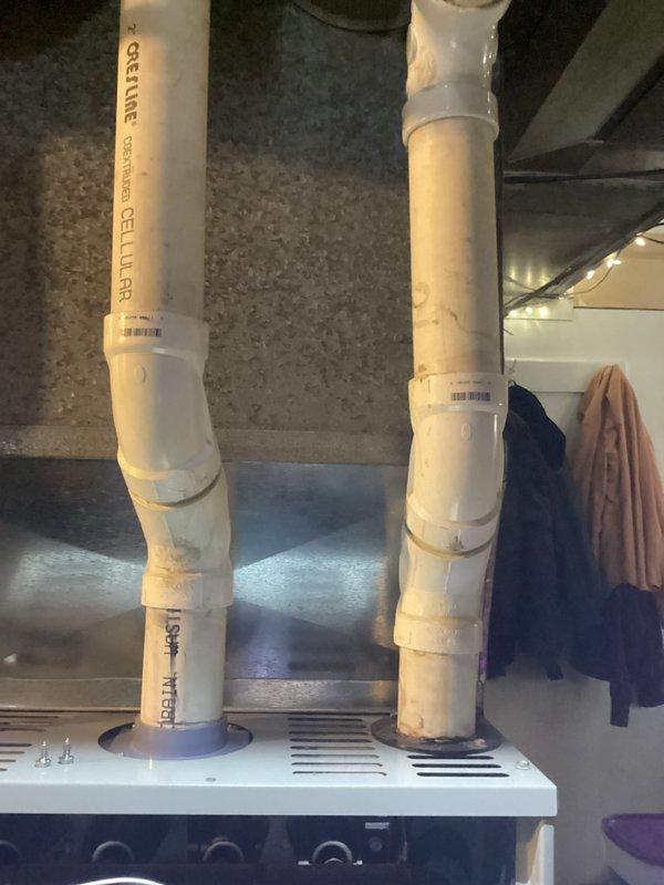 Performed comprehensive HVAC tune-up on customer's furnace system. Inspected PVC intake and exhaust venting for proper installation and airflow, confirming no blockages or damage present. Visual assessment of ductwork connections showed proper sealing and no signs of air leakage at junction points.