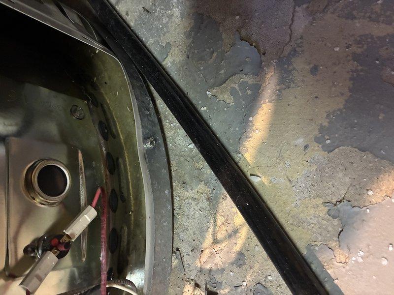 Performed inspection and maintenance on tanked water heater system and associated mechanical components. Addressed deteriorated flooring conditions around equipment area and verified proper operation of water heater connections, including supply lines and drainage components. Documented equipment condition with photographic records showing existing wear patterns on mechanical housing and concrete substrate degradation for future reference.
