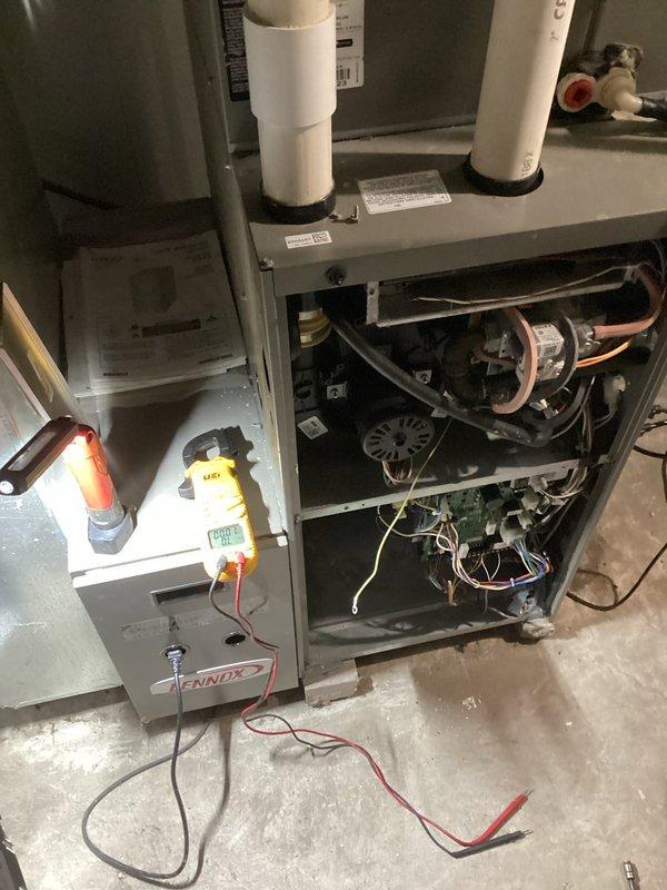 Completed scheduled prepaid maintenance visit on residential furnace system. Performed comprehensive inspection of unit with access panel removed, checked all internal components including motors, blower assembly, and heat exchanger. Utilized diagnostic testing equipment to verify electrical connections, measure voltage and amperage, and ensure system is operating within manufacturer specifications.