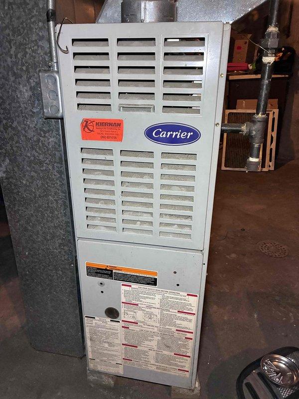 Responded to no-heat call for Carrier furnace. Diagnosed failed flame sensor preventing proper ignition. Cleaned flame sensor contacts and tested system through multiple heating cycles to confirm proper operation. Unit now functioning normally with consistent flame detection.