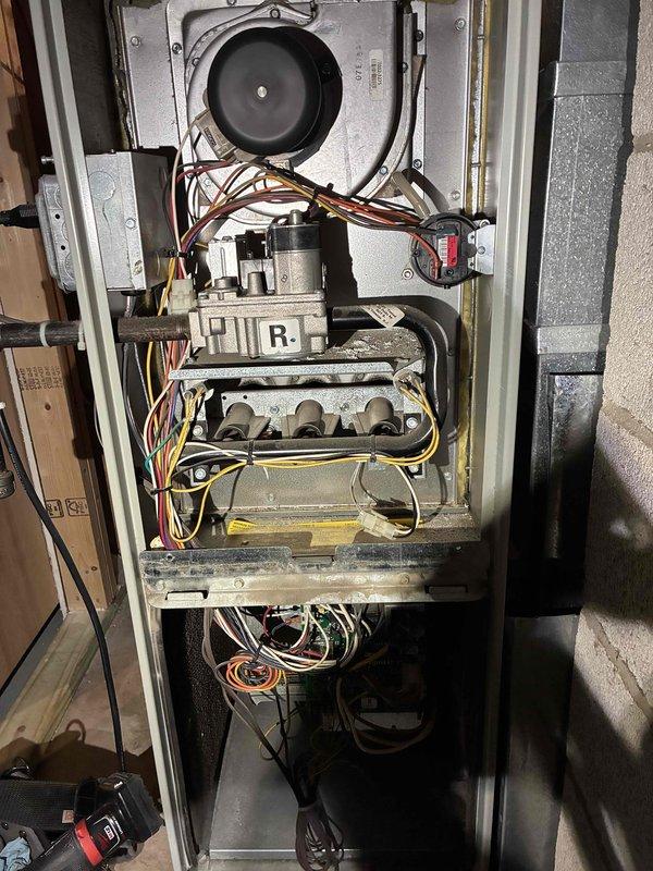 Performed comprehensive HVAC system tune-up including inspection of Honeywell control module. Identified and cleaned significant dust accumulation on components that could affect system efficiency. Conducted electrical diagnostics using clamp meter, confirming low amperage draw of 0.64A, indicating proper electrical operation within manufacturer specifications.