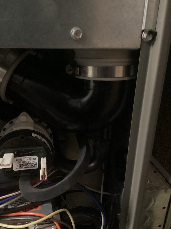 Performed routine tune-up on HVAC system in utility area. Inspected PVC condensate drainage piping, verified proper routing and connection points with no visible leaks or blockages. Checked ventilation components and electrical connections at panel to ensure system is functioning within specifications.