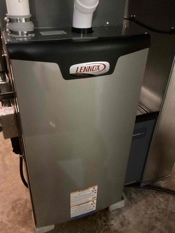 Successfully installed a new Lennox furnace in the residential mechanical room, completing all necessary PVC ventilation connections and ensuring proper integration with the existing A.O. Smith ProMax water heater system. All plumbing and electrical connections were properly secured and tested for optimal performance.