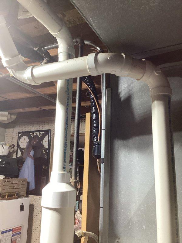 Conducted complete HVAC tune-up service in basement utility area. Inspected plumbing infrastructure including PVC piping network and black insulated duct. All components appear properly installed with no signs of leakage or damage, confirming system integrity and functionality.