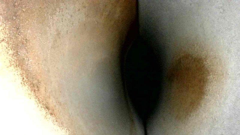 Performed routine inspection of HVAC ducting system. Visual examination revealed some minor discoloration and possible rust formation at duct seams. Photographed interior conditions for documentation purposes. System currently functioning within normal parameters despite noted cosmetic issues.