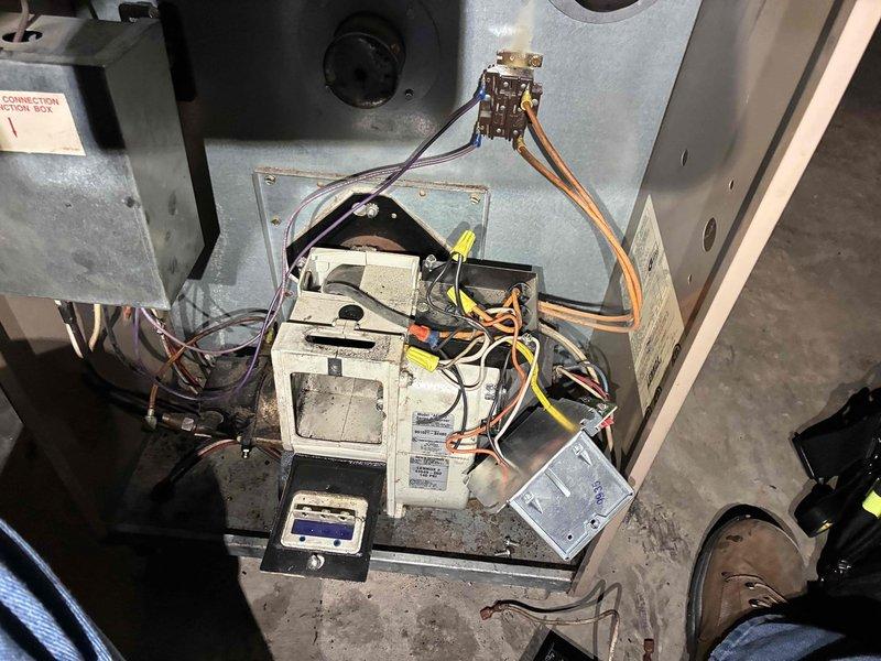 Responded to no-heat call for aging system. Upon inspection, identified faulty control module with damaged wiring connections as the source of failure. Replaced control board and rewired electrical connections according to manufacturer specifications, then performed complete system test to verify proper ignition sequence and heat output. System now functioning normally with restored heating capability.