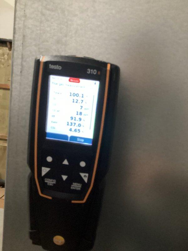 Performed comprehensive tune-up service on HVAC system, including combustion analysis using Testo 310 analyzer. Measurements indicated system is operating within acceptable parameters with readings of 100.1% O2, 12.7 CO2, and 91.9% efficiency at 137°F stack temperature. All diagnostic values were within normal operating range.