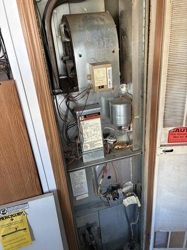 Responded to no-heat call for aging furnace (10+ years). Upon inspection, found faulty blower motor and worn electrical connections. Removed access panel, replaced blower motor assembly, cleaned interior components, and reconnected wiring harnesses. System now functioning properly with restored heat output.