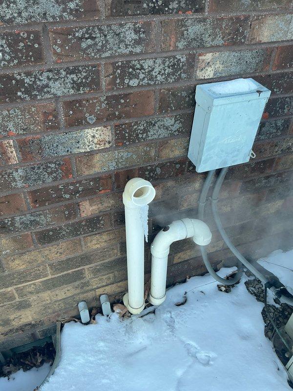 Conducted inspection of existing HVAC system, identifying an aging furnace unit with visible condensation on the exhaust duct indicating potential efficiency issues. Recommended replacement of the current HSC-branded unit with new equipment to improve system performance and reliability.