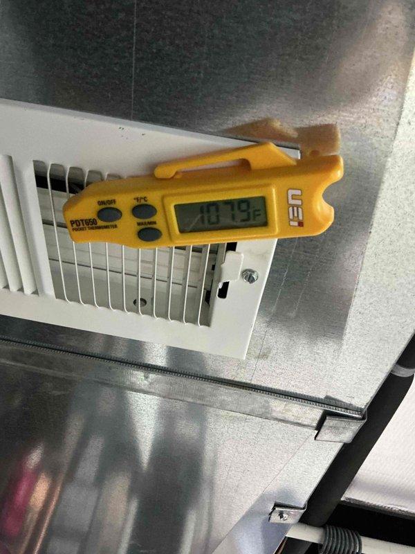 Inspected ductwork system revealing accumulated dust and residue affecting airflow. Diagnosed and serviced 10+ year old heating system that was failing to maintain set temperature. Verified Honeywell thermostat functionality (confirmed proper settings at 73°F with system in heat mode) and cleaned ventilation components to restore proper operation. System now functioning correctly with improved airflow.