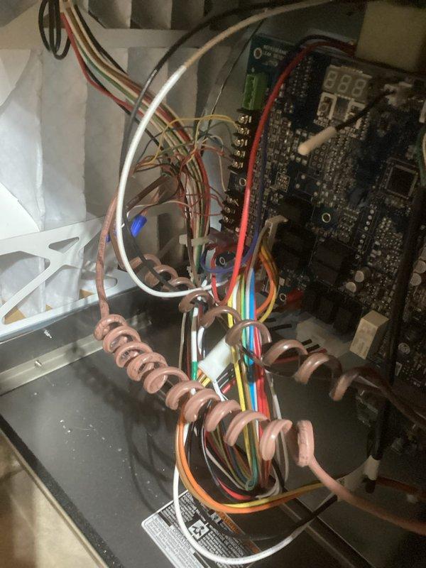 Completed installation of a new furnace with electronic control board. Performed comprehensive wiring connections between the circuit board and system components, ensuring proper electrical configuration of all control wires (red, blue, yellow, green, white). Verified system functionality through diagnostic display testing.