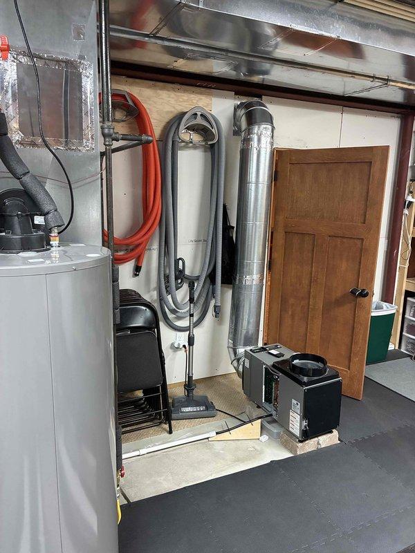Conducted comprehensive indoor air quality assessment in basement utility area housing water heater, HVAC ductwork, and air handling equipment. Evaluated existing ventilation system configuration, inspected metal ductwork for proper airflow distribution, and assessed dehumidification equipment placement to provide estimate for IAQ system improvements and optimization of basement environmental conditions.