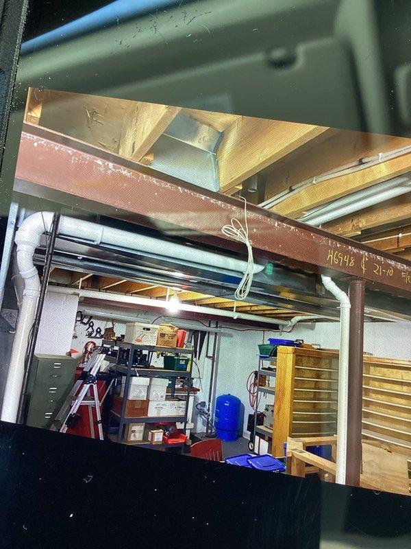 Conducted warranty inspection of HVAC system in basement utility room. Documented existing installation configuration including ductwork placement, piping connections, and structural clearances. No immediate service issues identified during visual assessment.